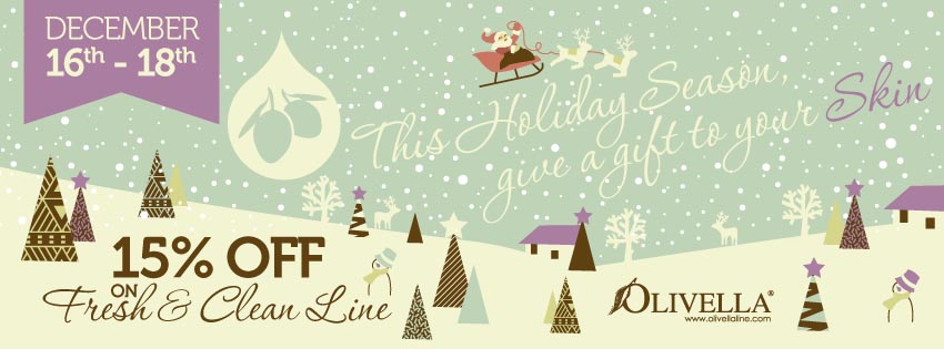 Still looking for eco-friendly, all natural gifts for the holidays? Think of Olivella. You can save 15 % OFF on all products from our Fresh & Clean line. Valid until December 18th, 2012.